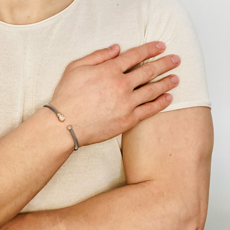 Etiketler: Gümüş Erkek Bileklik, 14 Ayar Rose Altın Kaplama, Işıltılı Desenli Kararmaz Çelik Bant, MDE170725R1, Erkek Bileklik
