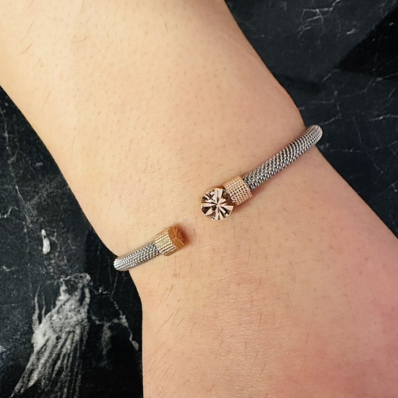 Gümüş Erkek Bileklik,14 Ayar Rose Altın Kaplama,Işıltılı Desenli Kararmaz Çelik Bant
