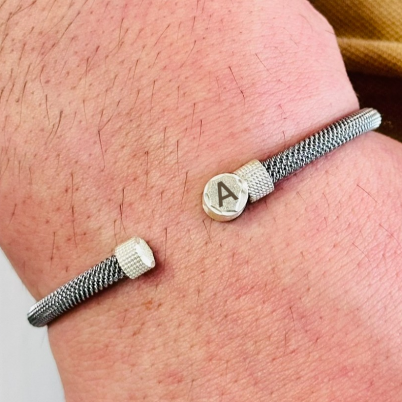 Gümüş Erkek Bileklik,14K Beyaz Altın Kaplama,Işıltı Desenli,Harf Yazılabilir,Şık Hediye