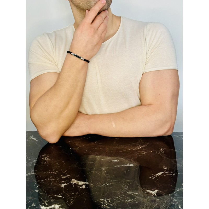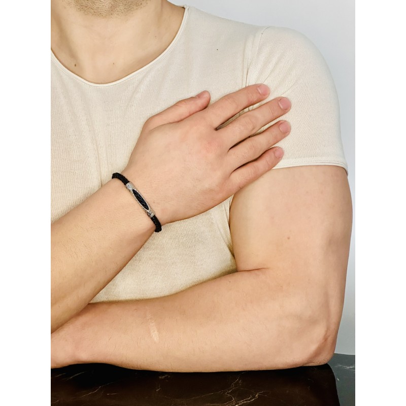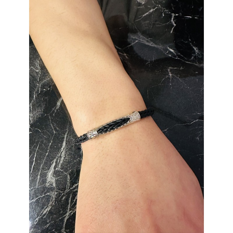 Etiketler: Gümüş Erkek Bileklik, Beyaz Altın Kaplama, El Örgüsü Deri Kordon, Özel Desen Benzersiz Model Bileklik, MDE110625B, Erkek Bileklik